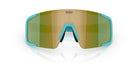 De lens is een echte blikvanger: groene, volledig spiegelende polycarbonaat lens (Base 6 decentered) die vervorming minimaliseert en zorgt voor een haarscherp zicht. Met een lichttransmissie van 12,3% (VLT) beschermt deze lens uitstekend tegen fel zonlicht en schittering. Ideaal voor zonnige tot wisselende omstandigheden.