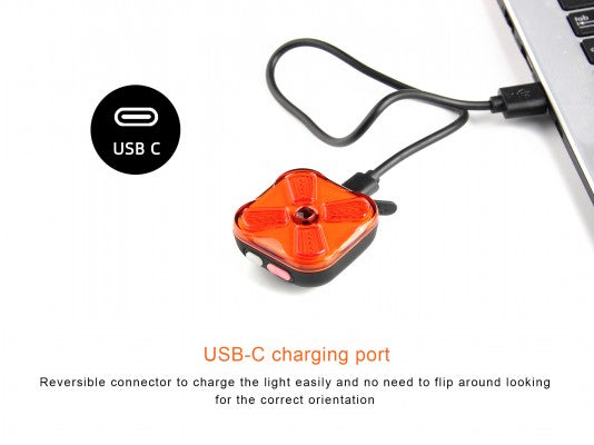Dankzij de USB-C oplaadfunctie is het licht snel en eenvoudig op te laden, zodat je altijd klaar bent voor de volgende rit. Met een maximale lichtopbrengst van 50 lumen ben je optimaal zichtbaar, zowel overdag als ’s nachts.